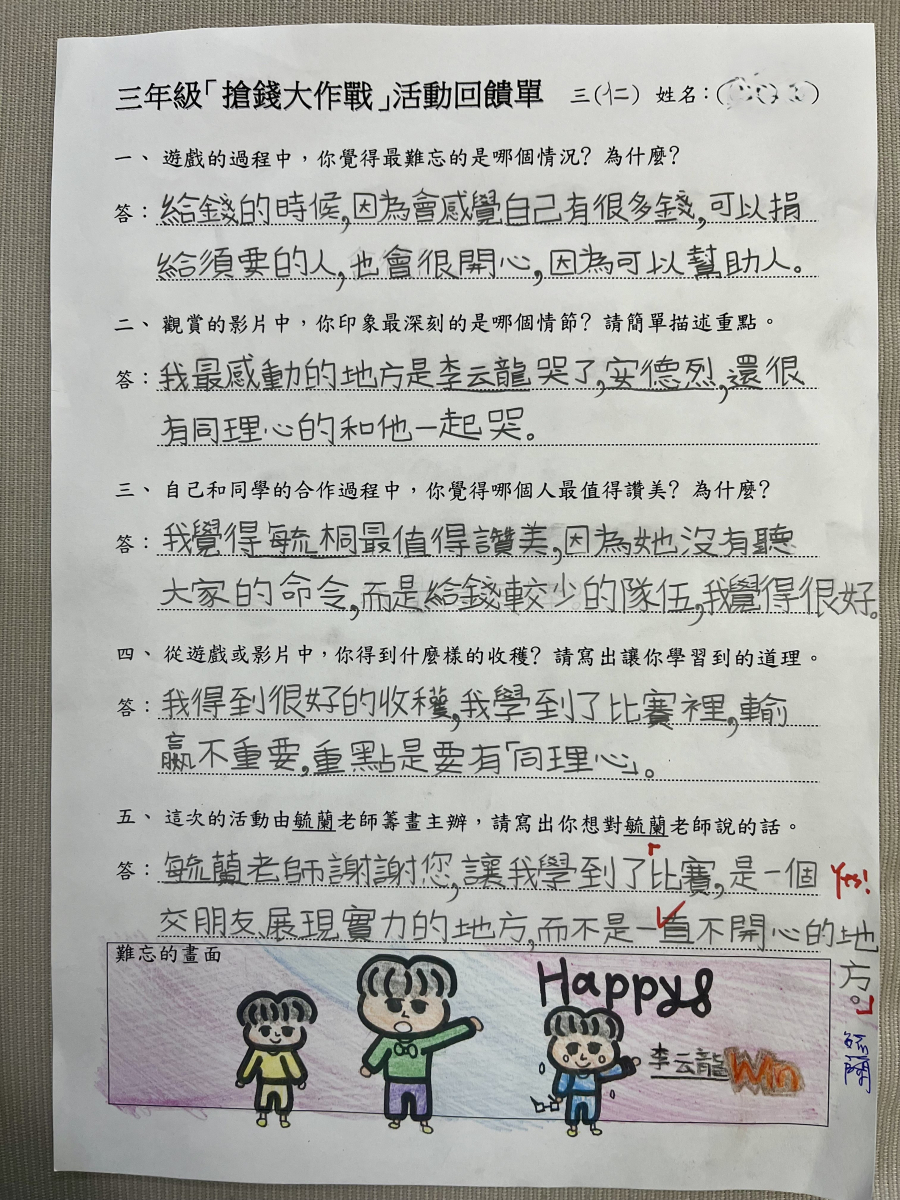 ●說明:透過體驗活動與影片討論,傳達給予與同理的重要性,並教導如何面對與同學的競賽